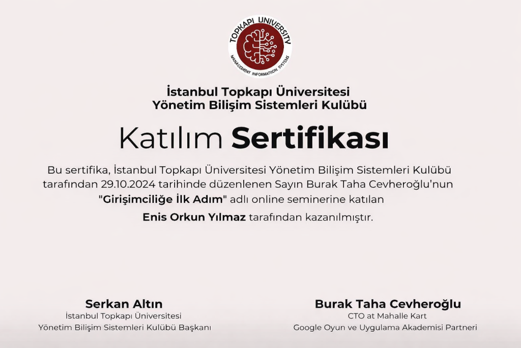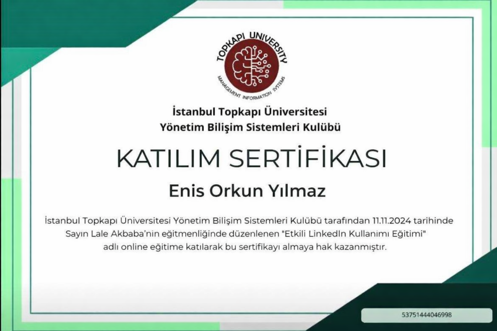 Hello! My name is Enis Orkun Yılmaz. I study Management Information Systems (MIS) in a 100% English-taught program at Topkapı University.